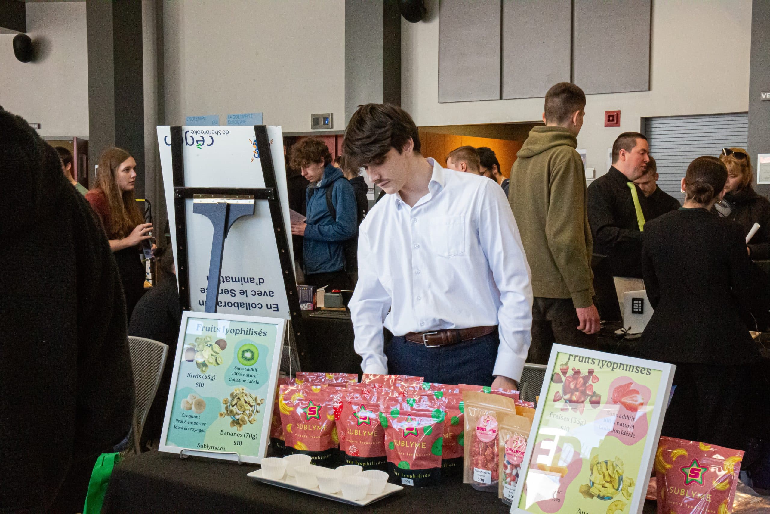 Dans le hall de la salle Alfred-DesRochers (pavillon 3), venez découvrir les projets inspirants de nos jeunes entrepreneurs! Parcourez les 19 kiosques, échangez avec les personnes derrière ces projets et profitez de l’occasion pour soutenir leurs initiatives en achetant leurs produits directement sur place.